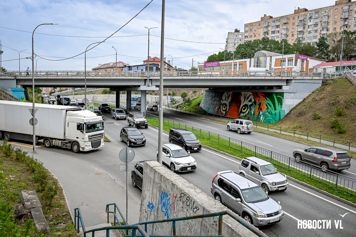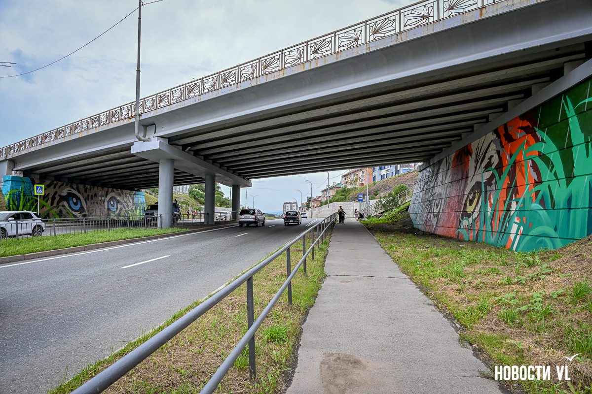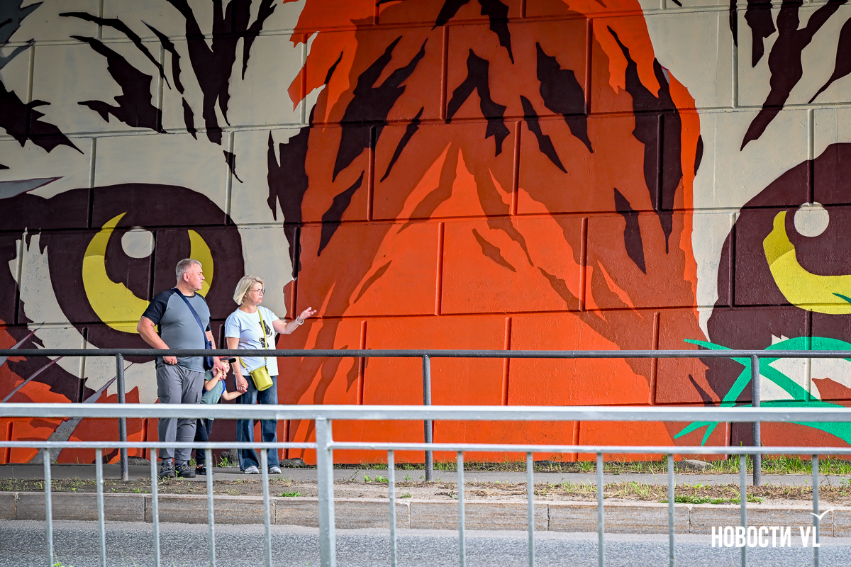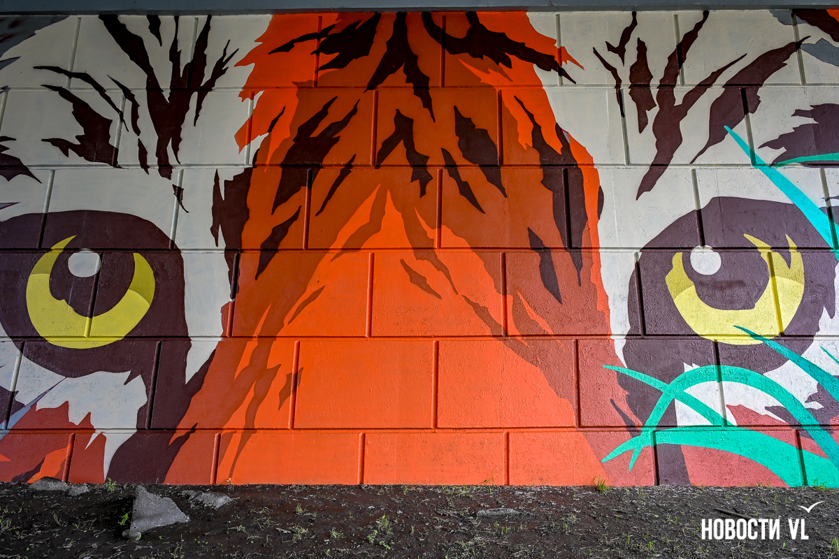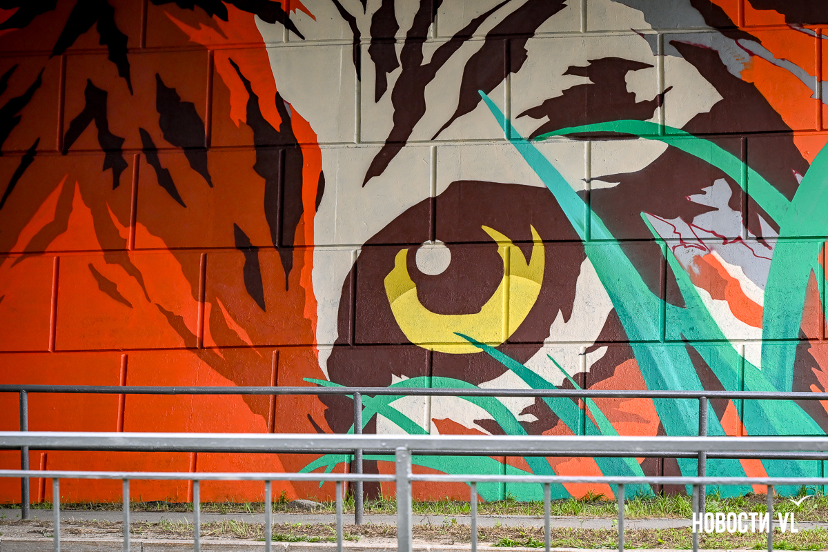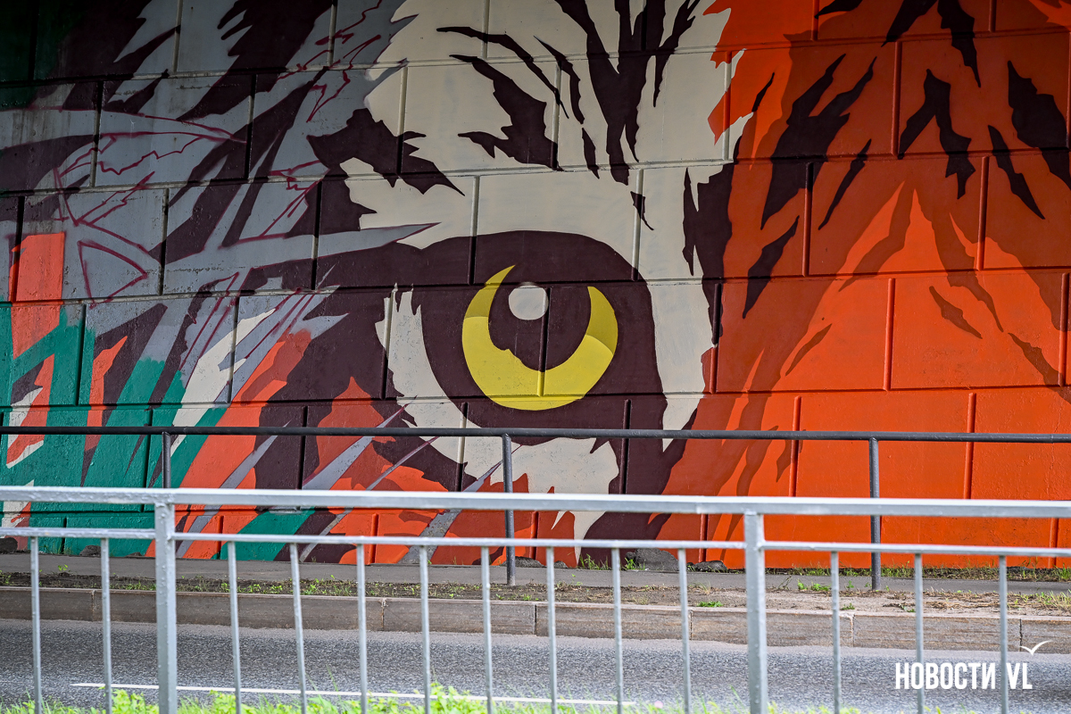 Несколько дней назад владивостокские художники закончили роспись стен под мостом путепровода на Окатовой. Теперь с противоположных сторон дороги на людей и друг на друга смотрят тигр и леопард. Изображения хищников здесь появились благодаря проведённому управлением молодёжи конкурсу муралов.