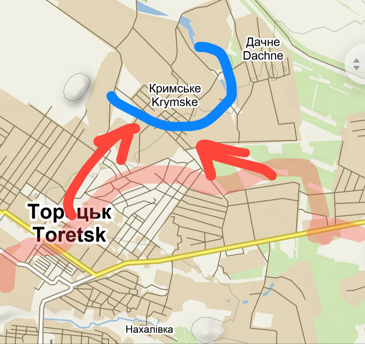 За прошедшую ночь, ВС РФ расшири зону контроля в городе от центральной части в направлении пригорода нп. Крымское и шахты Торецкая, где так же расположен террикон «Точка 239».