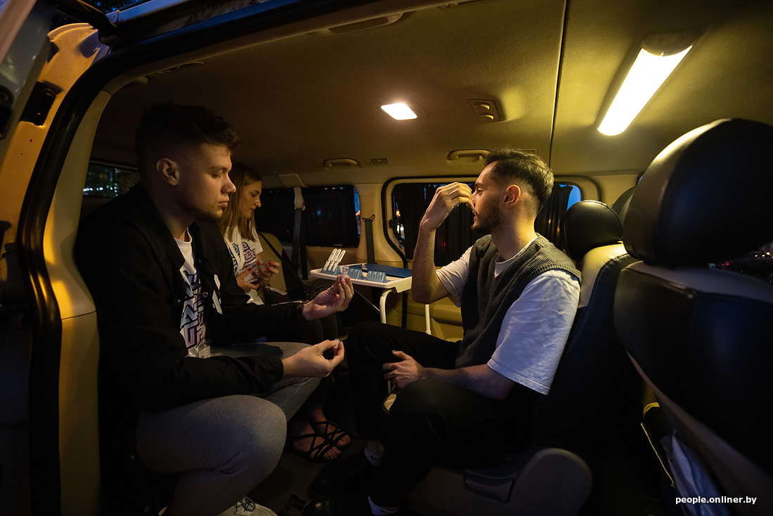 Время близится к часу ночи, и мы заканчиваем работу. Подобных дежурств у ребят по два в неделю: вечером вторника они стабильно стоят на Зыбицкой, около музея денег, а по выходным выезжают на какое-нибудь самое громкое мероприятие города. В эту субботу, например, они будут стоять на Минском море и проверять тусовщиков с пляжа №5. В прошлый раз у них там был богатый улов: кто-то из инстаграмщиков снял про их бусик популярный рилс, и к ребятам выстроилась огромная очередь из желающих провериться. В тот день даже закончились анкеты. К счастью, все оказались отрицательными. Надеемся, после нашего текста тех, кто перестанет гадать и бояться и все-таки придет провериться к ребятам, станет еще больше.