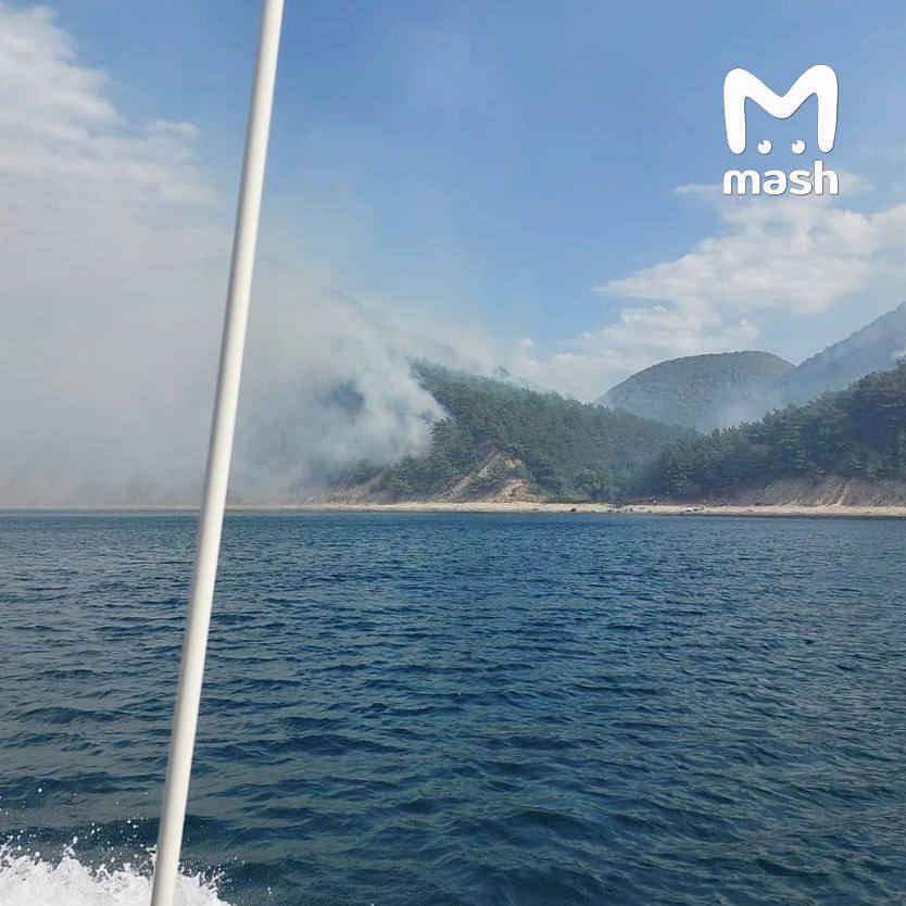23 туриста застряли на пляже из-за лесного пожара под Геленджиком.
