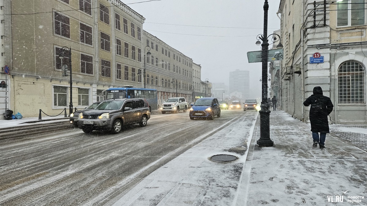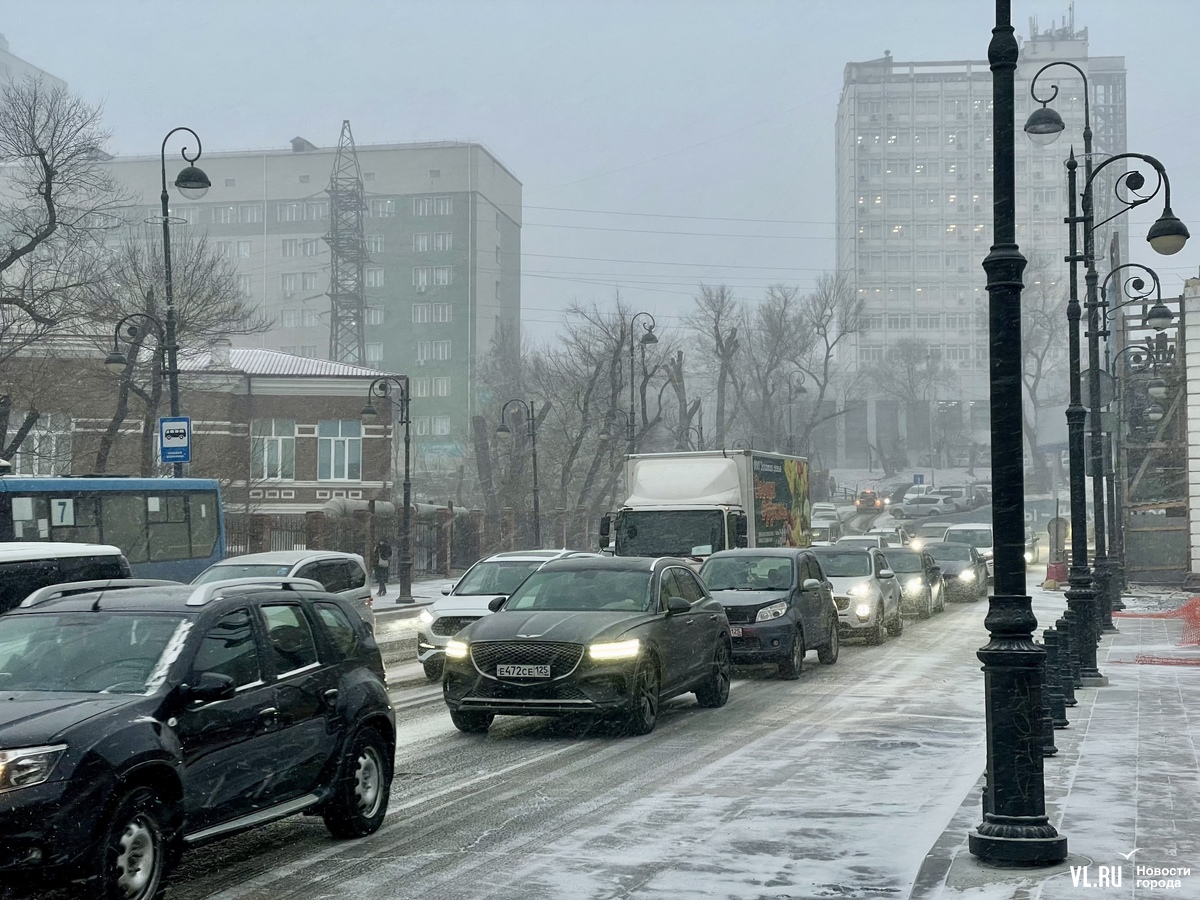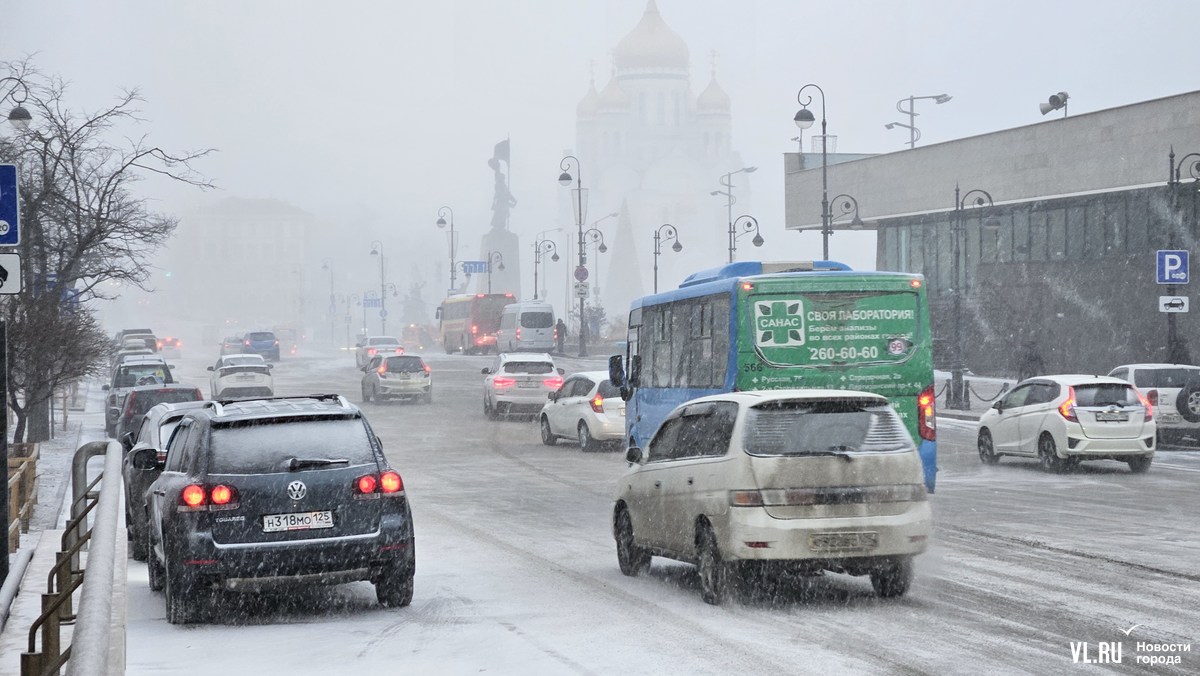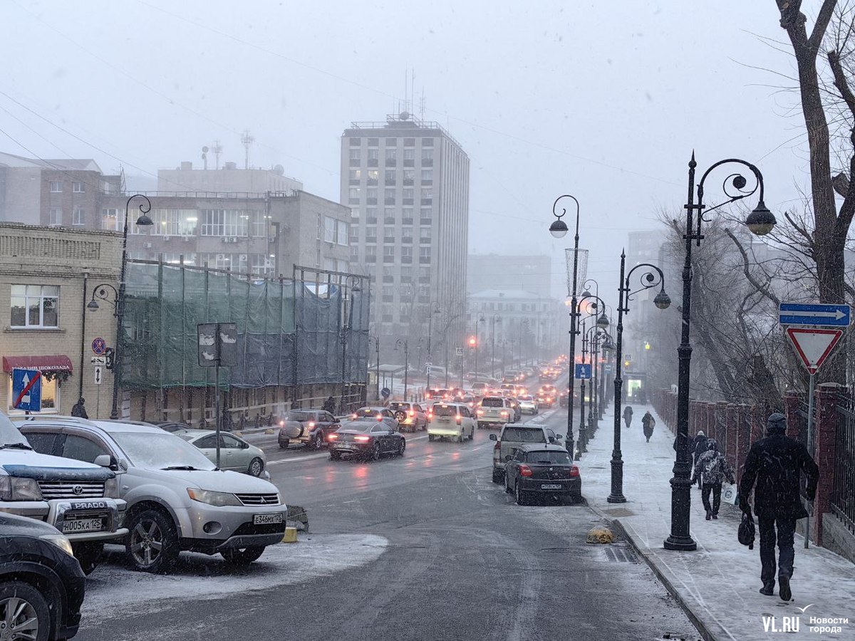 Ночью во вторник, 28 января, как и прогнозировали синоптики, во Владивостоке поднялся сильный ветер, а утром начался снег. Дороги заранее обработали противогололёдной смесью, заторов пока не наблюдается.