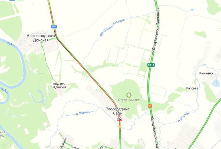 Почти 8-километровый затор сковал альтернативный участок трассы М-4 «Дон» в Павловском районе, если верить данным сервиса «Яндекс карты».
