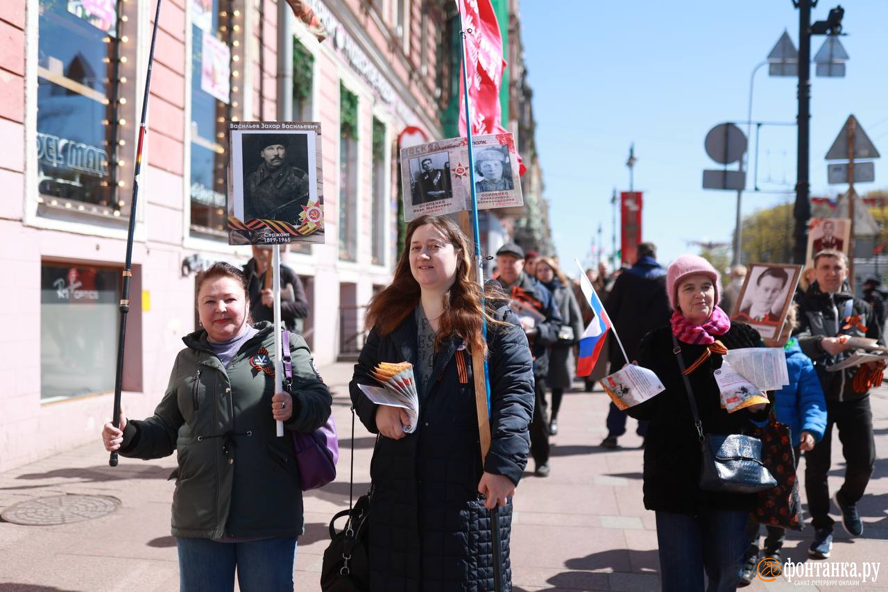 Бессмертный полк не целиком ушел в онлайн, в центр Петербурга вышли люди с плакатами