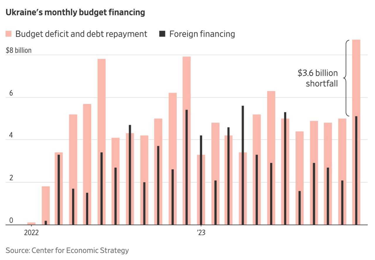 Под большим вопросом оказывается и заявленная программа принудительной мобилизации полумиллиона украинцев - ведь на неё тоже нужно больше миллиарда долларов. Не говоря уже о получении оружия и амуниции - которых опять же не хватает. В декабре Украина вынужденно сократила расход снарядов с 3-5 тысяч в сутки до 2 тысяч. Евросоюз амбициозно предложил нарастить производство снарядов - но на это опять же уйдут многие годы.