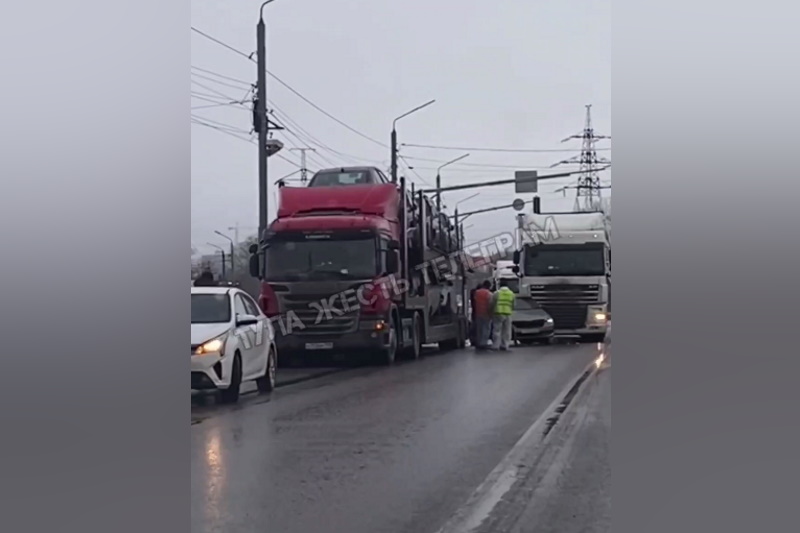 Два длинномера зажали легковушку на улице Рязанской в Туле сегодня днем, 18 декабря, сообщают очевидцы в социальных сетях. Сейчас собралась серьезная пробка.