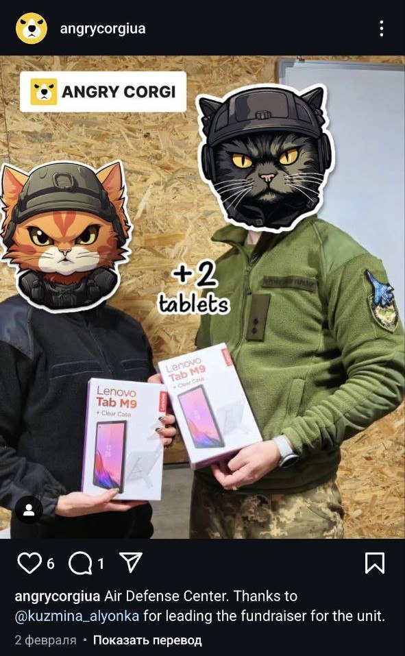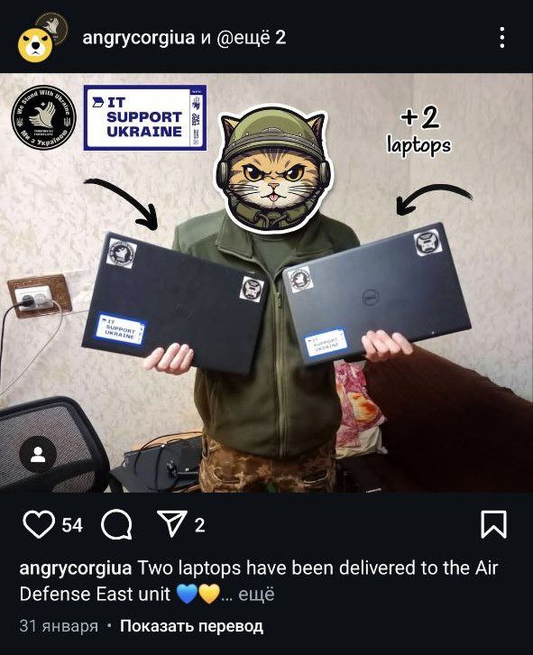 Организация "Злые корги" передавала ноутбуки и планшеты для украинской стороны, в том числе для противовоздушной обороны.