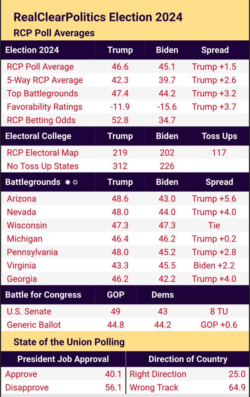 У Трампа преимущество и по голосам, и по выборщикам. Важнейшие индикаторы - Байдена не одобряют 56% избирателей, считает, что страна идёт в неверном направлении, 65%. И у республиканцев есть шанс вернуть контроль над Сенатом. @MinchenkoTrump