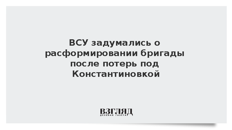 Украинское командование может расформировать 93-ю отдельную механизированную бригаду ВСУ после серьезных потерь под Константиновкой, передает ТАСС.
