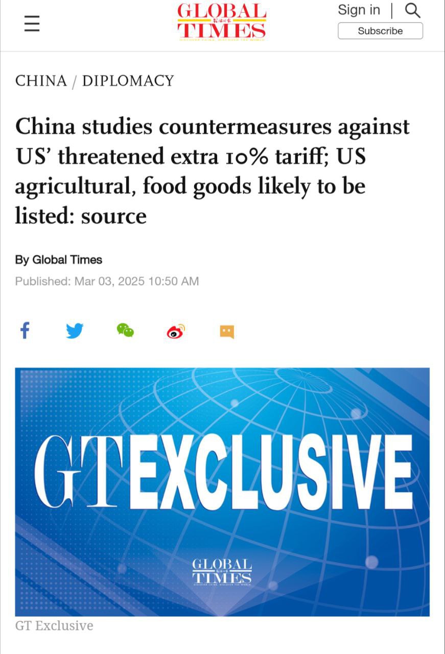 Китай готовит ответные меры на угрозу США ввести дополнительные 10% пошлины на китайские товары под предлогом борьбы с наркотрафиком, сообщает Global Times со ссылкой на свои источник в правительстве КНР.