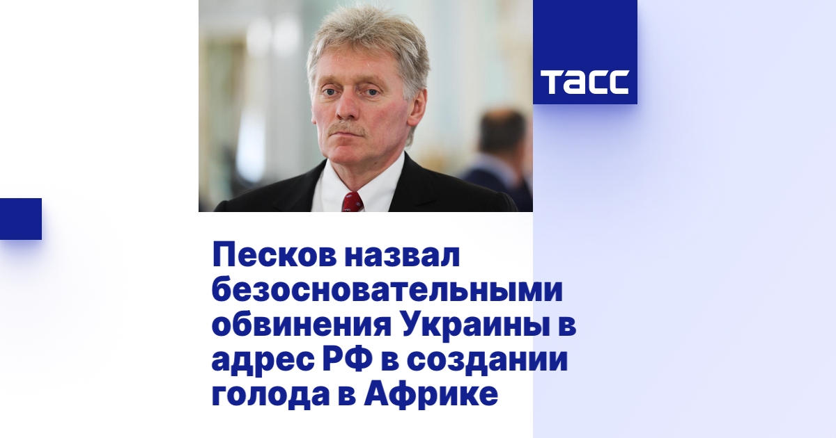 МОСКВА, 31 августа. /ТАСС/. Обвинения представителей Украины в том, что Россия якобы намеренно создает угрозу голода в Африке для вызова новых волн миграции, являются безосновательными. Об этом заявил журналистам пресс-секретарь президента РФ Дмитрий Песков.