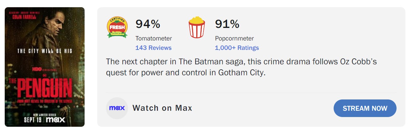 «Пингвин» продолжает набирать обороты — самый хайповый сериал конца года поставил новый рекорд по просмотрам
