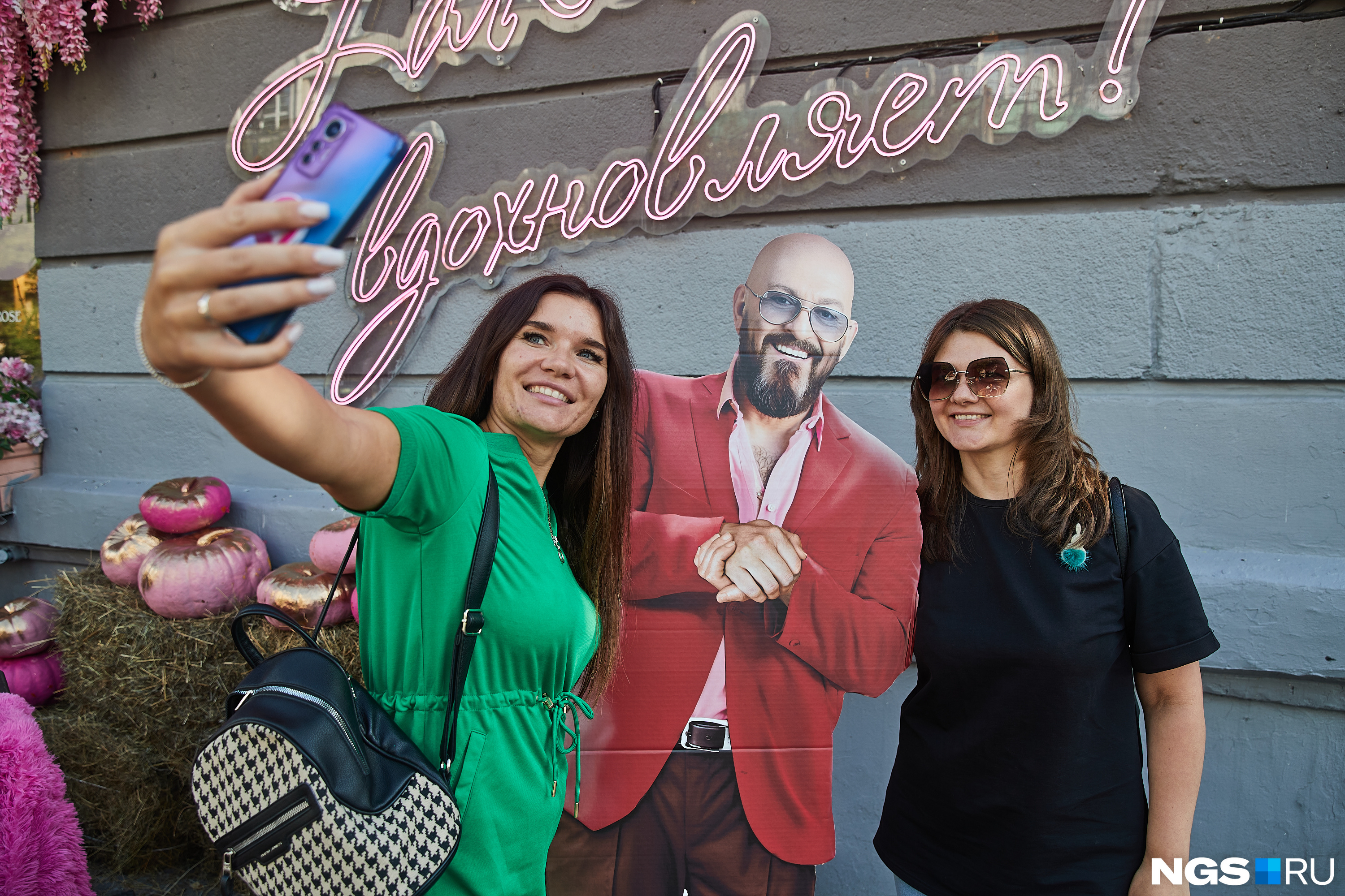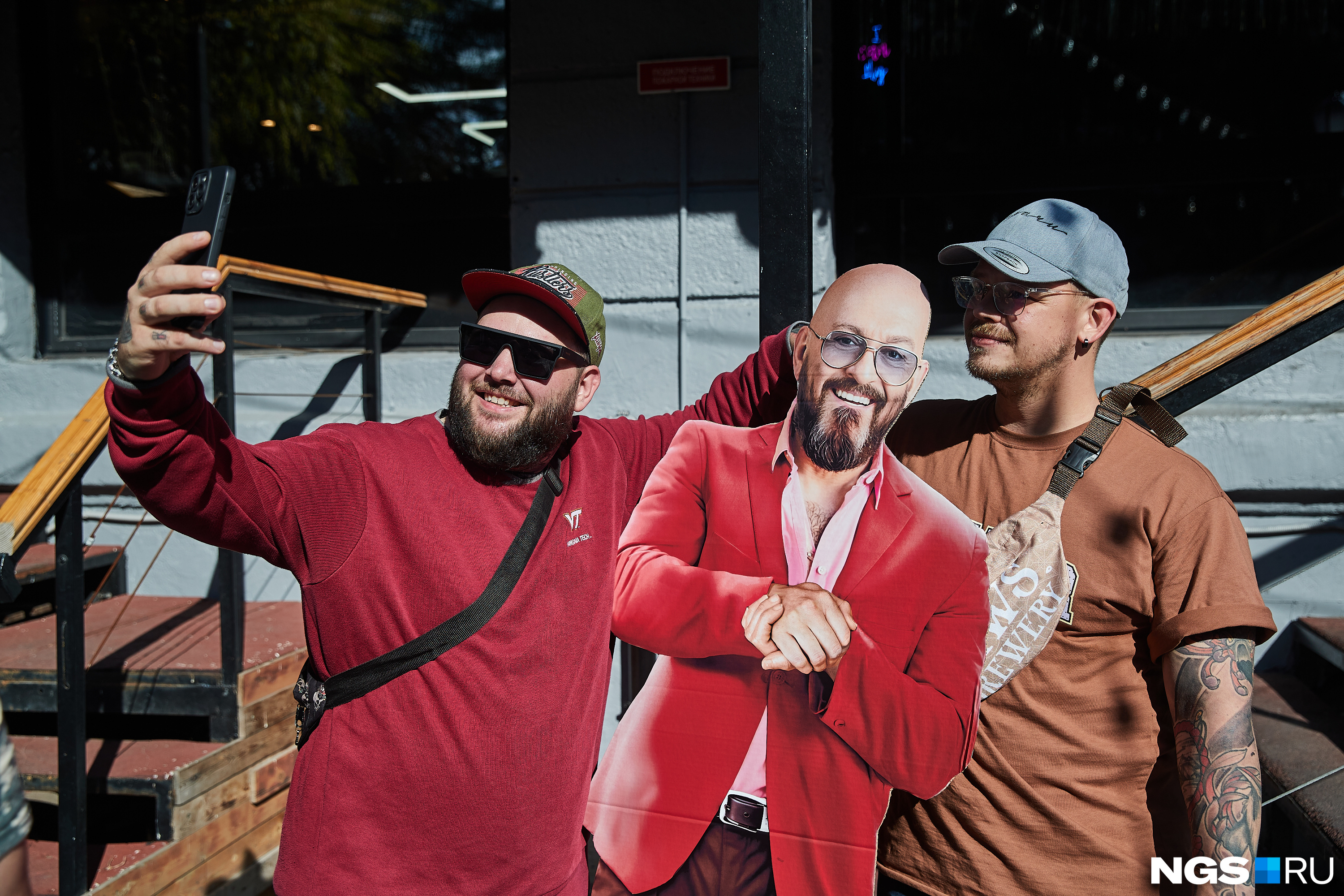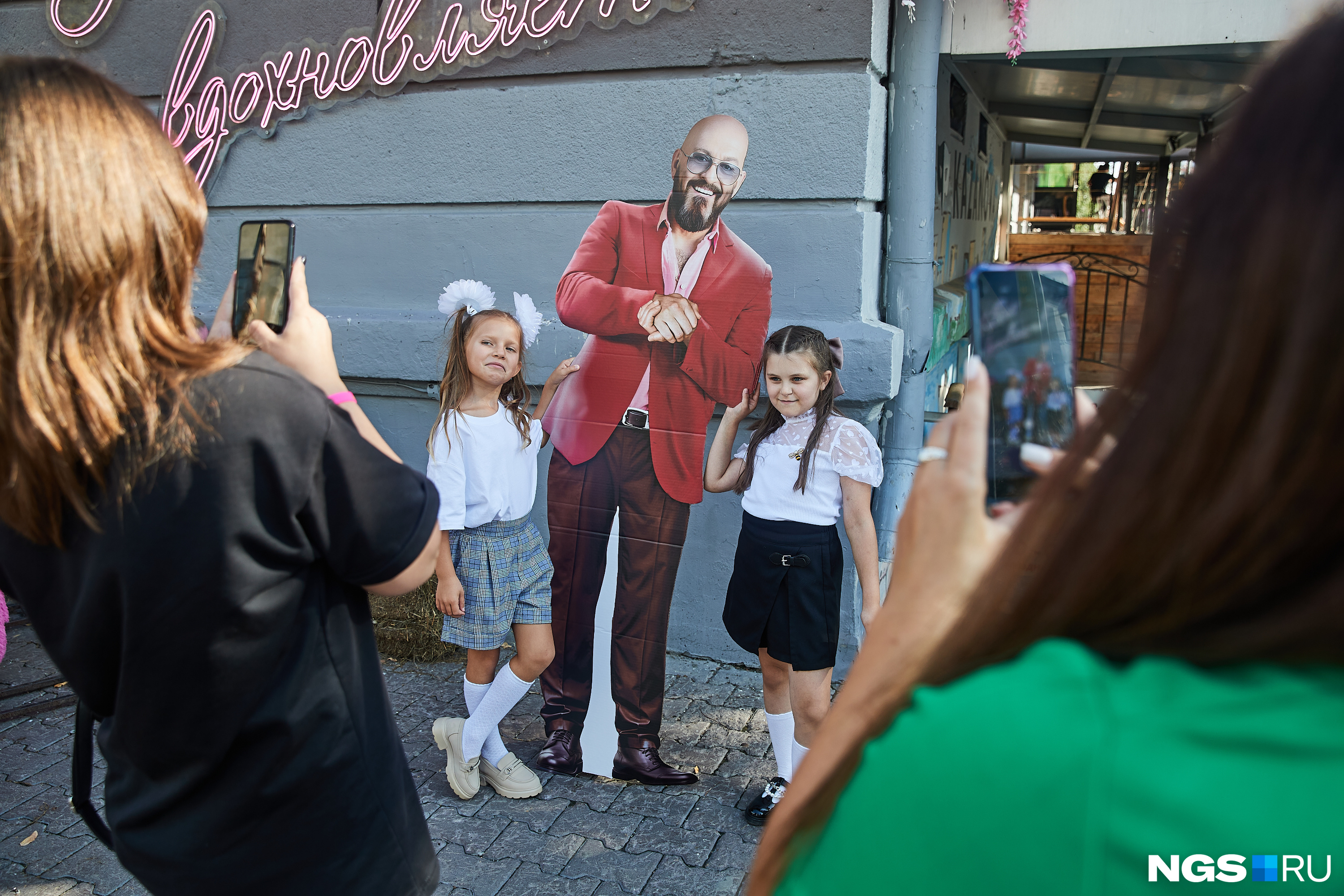 А еще с бодистендом Шуфутинского мы прогулялись по центру города — в районе ресторанного дворика на улице Ленина, Первомайского сквера и сквера «Водник». Некоторые прохожие не реагировали на макет исполнителя. А вот компания подростков примчалась фотографироваться, едва завидев нас в сквере.