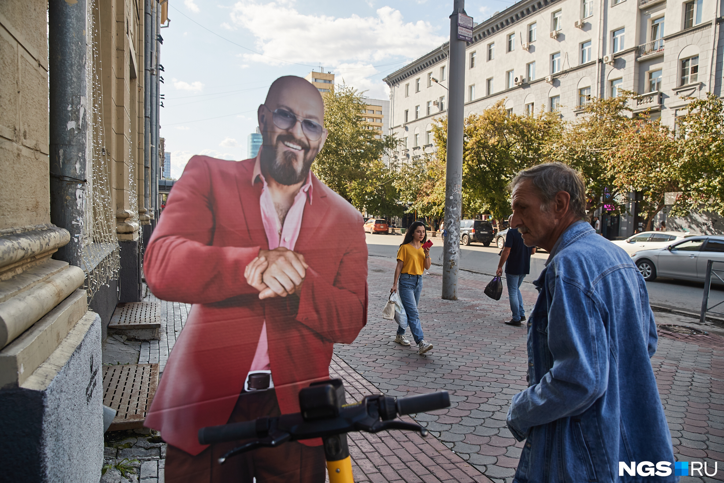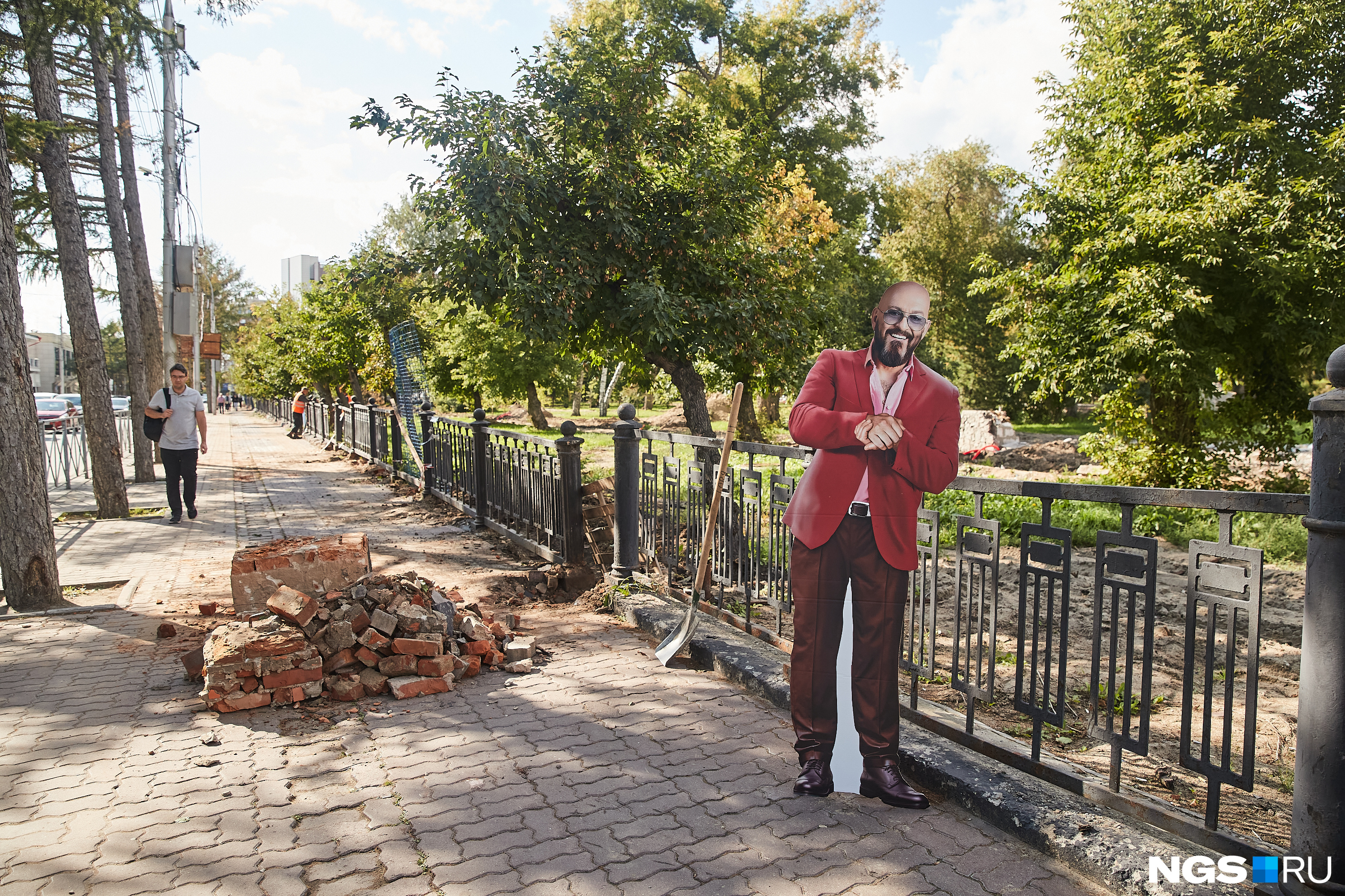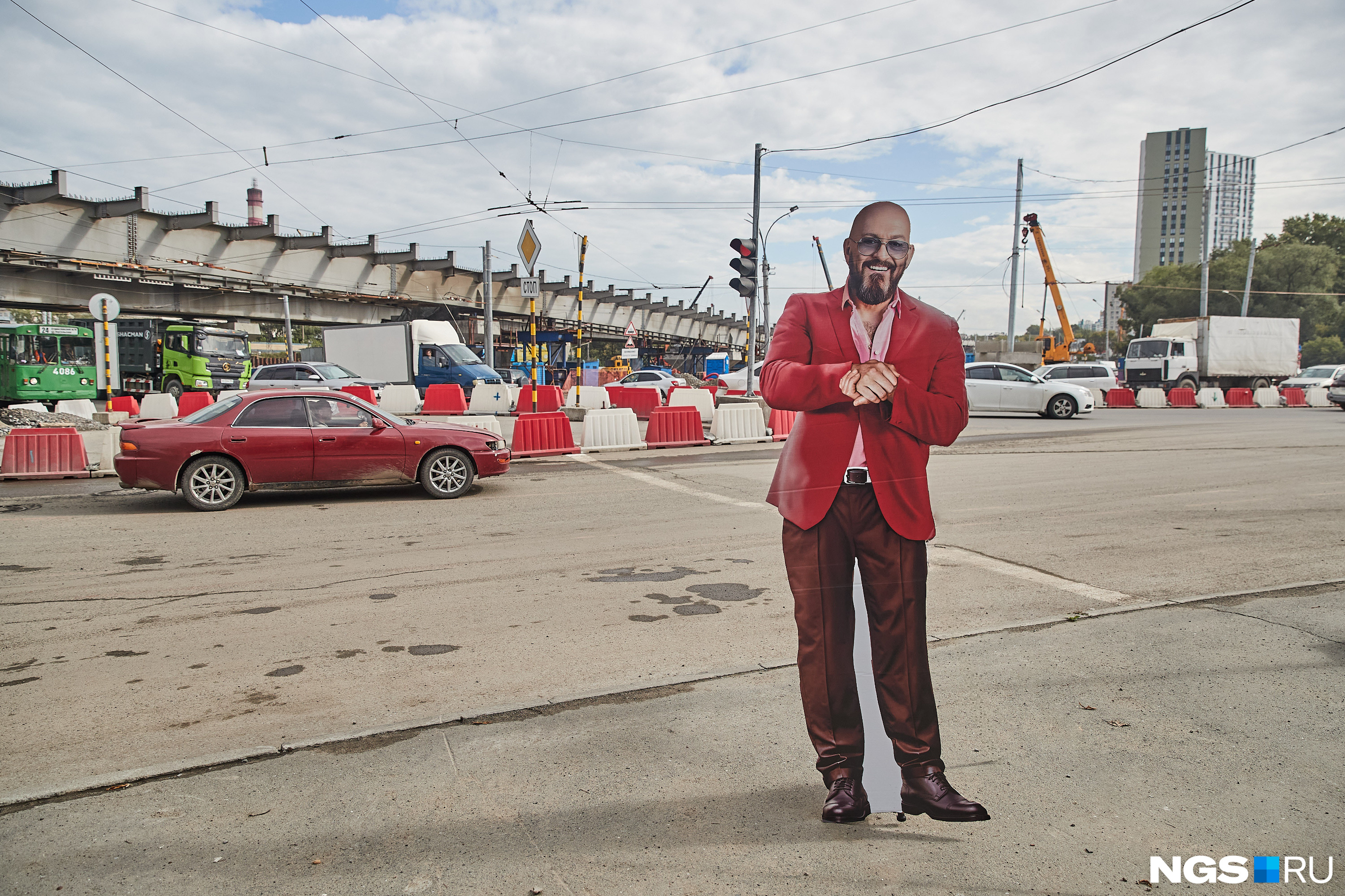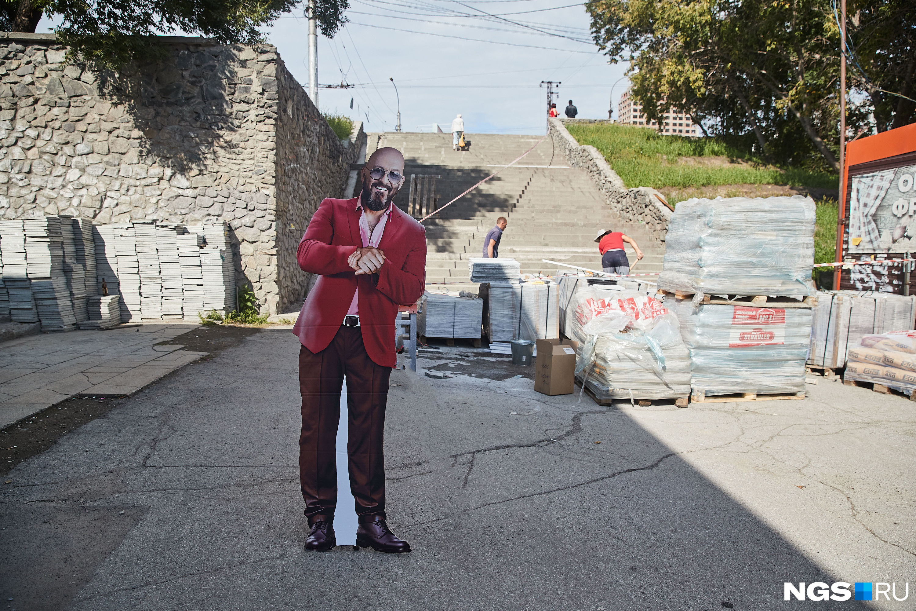 С ростовой фигурой (бодистендом) Шуфутинского мы объехали самые знаковые и проблемные объекты города — например, долгожданную, но не достроенную станцию «Спортивную».