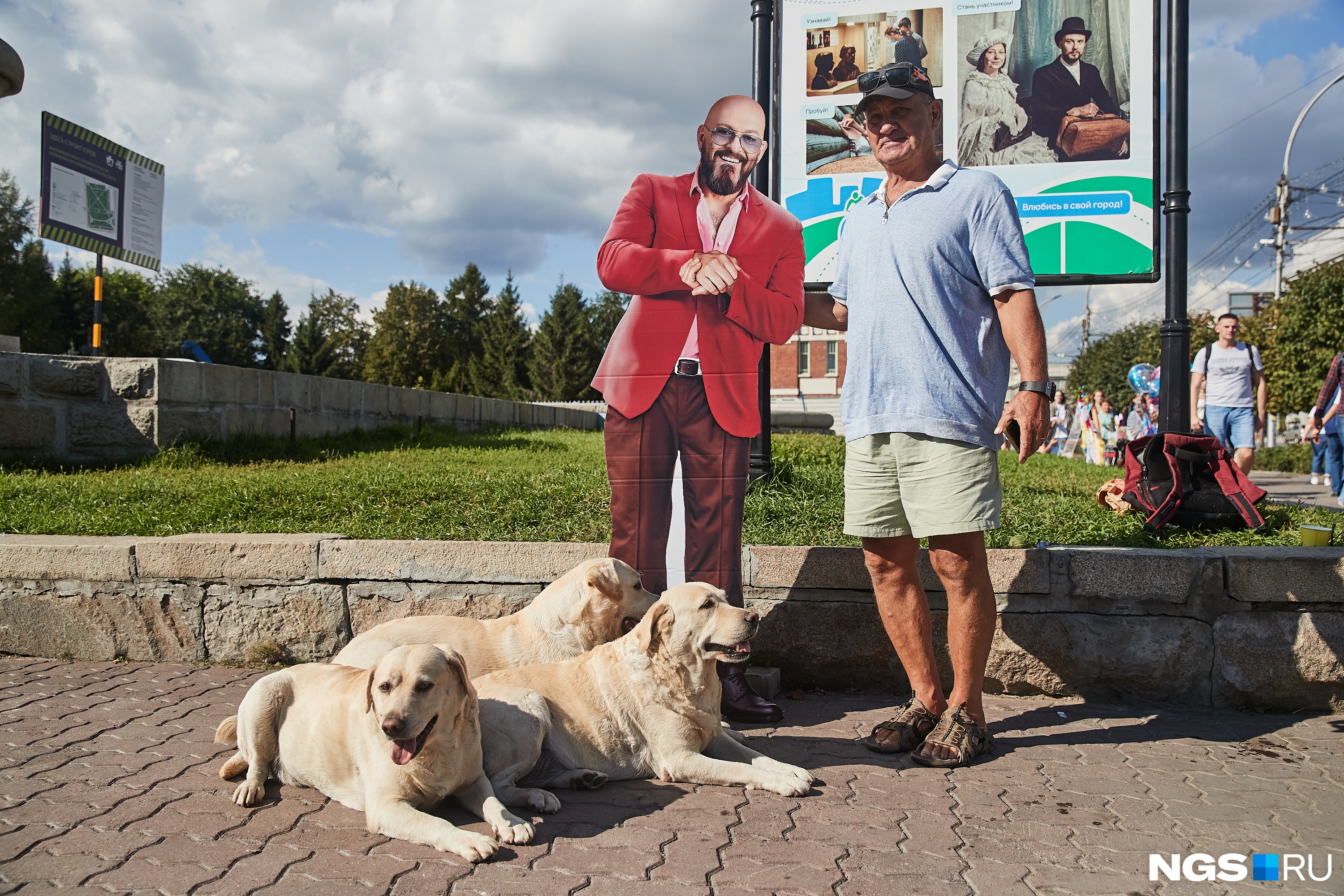 Удалось сфотографировать знаменитого исполнителя с легендами Новосибирска — лабрадорами из Первомайского сквера Милкой, Толстым и Блинчиком, а также их владельцем Павлом Алексеевым. Павел Шуфутинского узнал, но песню про 3 сентября не слышал.