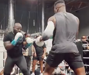 На днях Нганну показал, как пытается повторять движения за Тайсоном. Видео преимущественно разочаровало болельщиков. Джон Фьюри увидел здоровяка на лапах с Майком и не прошёл мимо.А вот работа с Такамом выглядит намного солиднее. Проблема разве что в том, что Карлос не похож на Тайсона ни стилистически, ни антропометрией.