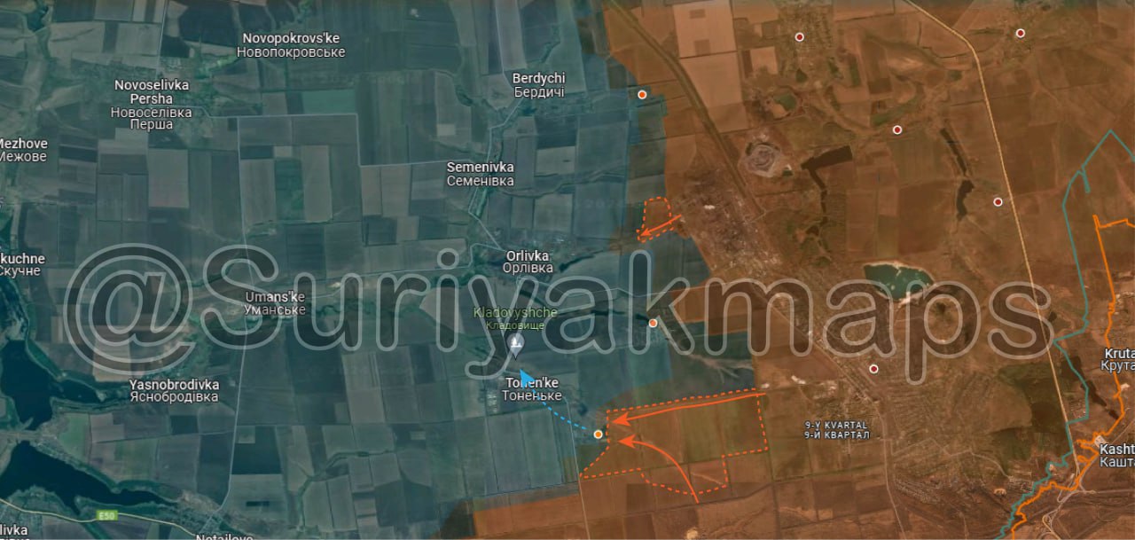 1. Продвижение ВС РФ в районе Степового (Петровского). Противник оставил попытки держаться за западную часть разрушенного села.