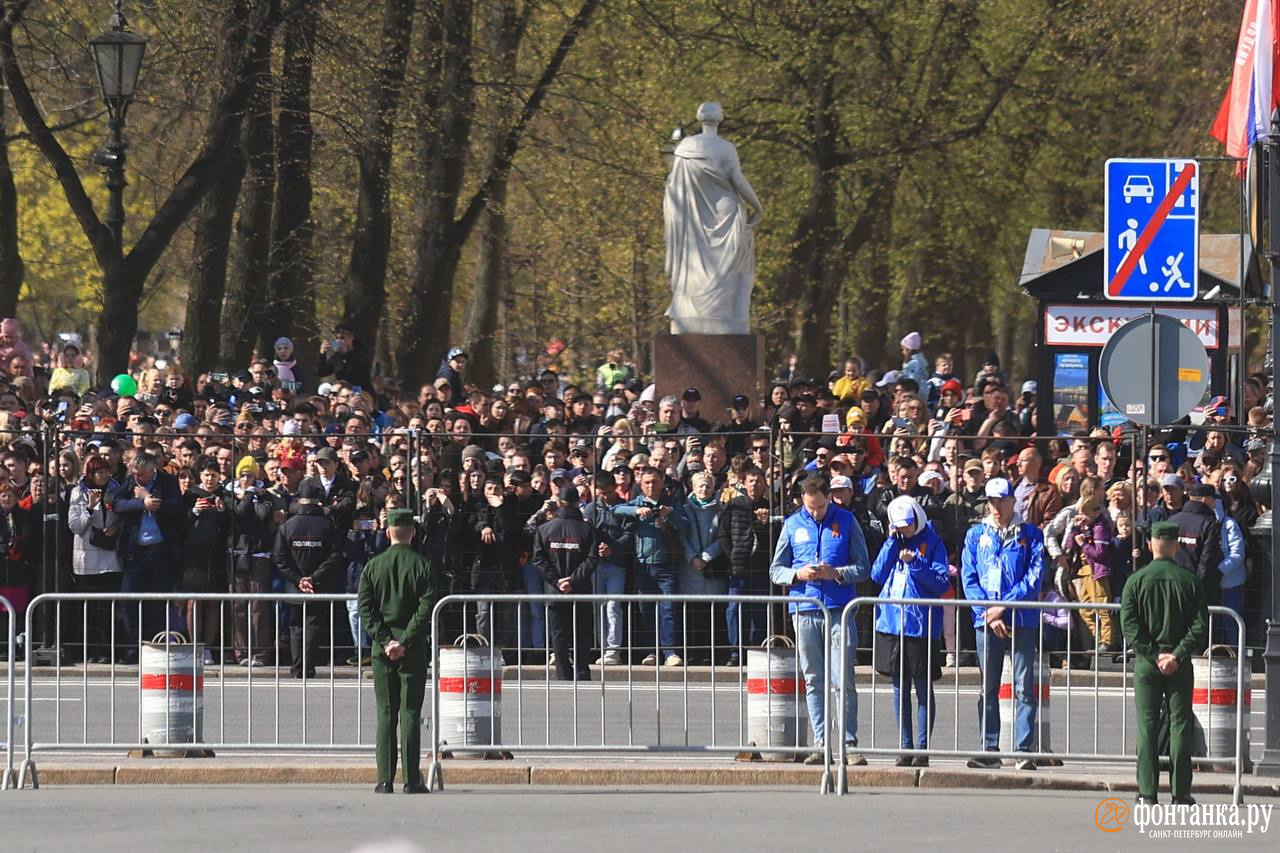 Несмотря на все перекрытия, петербуржцы по традиции все равно пришли посмотреть парад Победы. «Просочиться» поближе к Дворцовой, как оказалось, можно было со стороны Гороховой. На фото «Фонтанки» видно, что перед оцеплением собрались сотни людей.