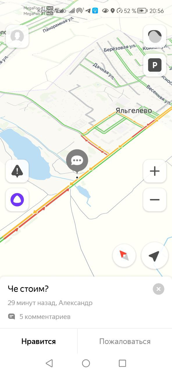 Судя по данным сервиса «Яндекс-Навигатор», на момент публикации ситуация в районе Яльгелево не изменилась к лучшему.