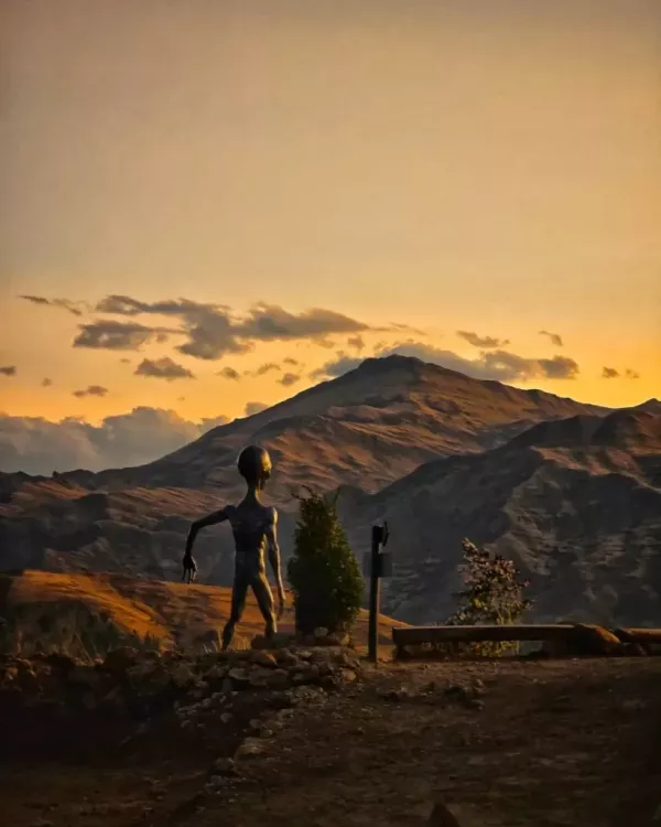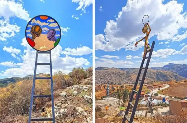 Однако это не просто китчевый аттракцион у дороги для создания контента. Интерактивная художественная композиция, созданная мастером по имени Тупак Камари Кандиа, искусно соединяет воедино перуанский фольклор и научную фантастику, раскрывая глубокую связь здешней культуры с космосом.