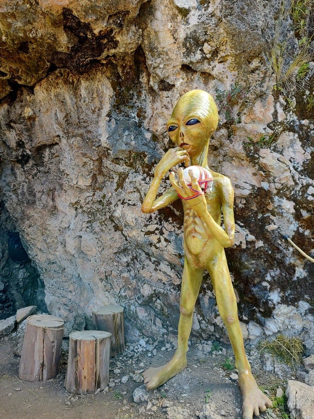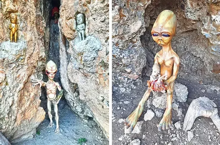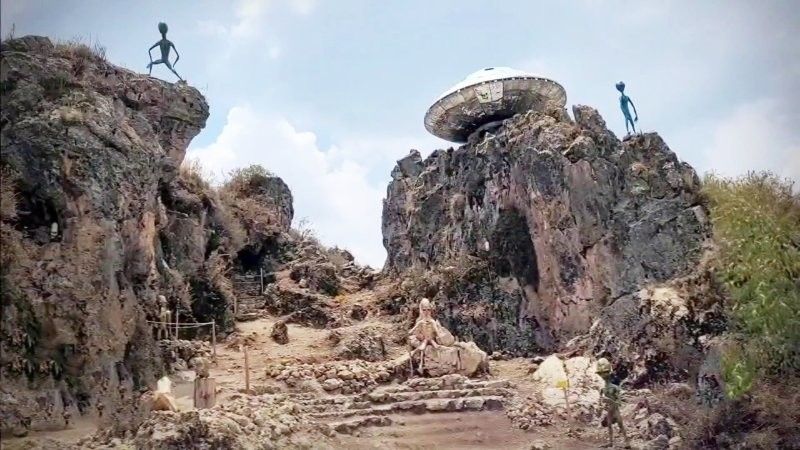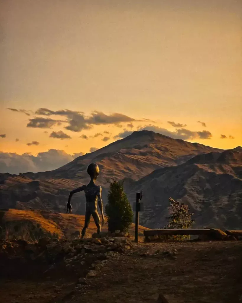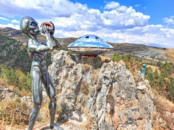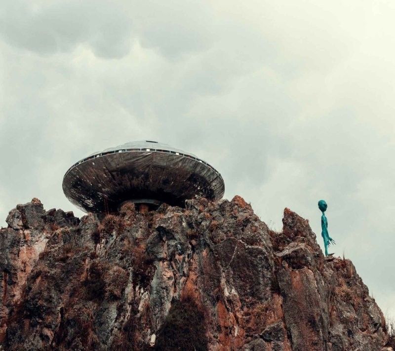 Намекая на скорый визит гостей из иных миров, туристов встречают таблички с провокационной надписью "Бесплатное похищение" и впечатляющая скульптура НЛО.