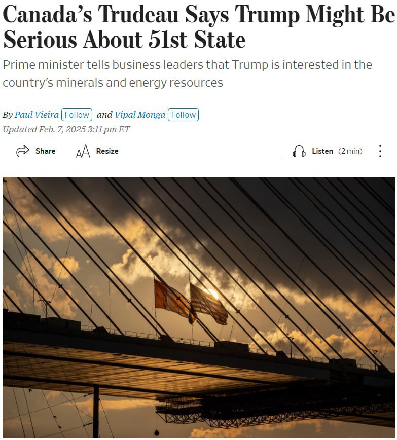 По данным издания, Трюдо считает, что президент США не шутит, когда говорит о стремлении сделать Канаду 51-м штатом.