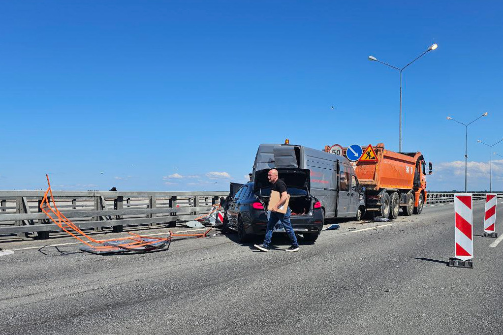 Водитель «БМВ» уехал в больницу после массового «паровозика» на КАД в Кронштадте