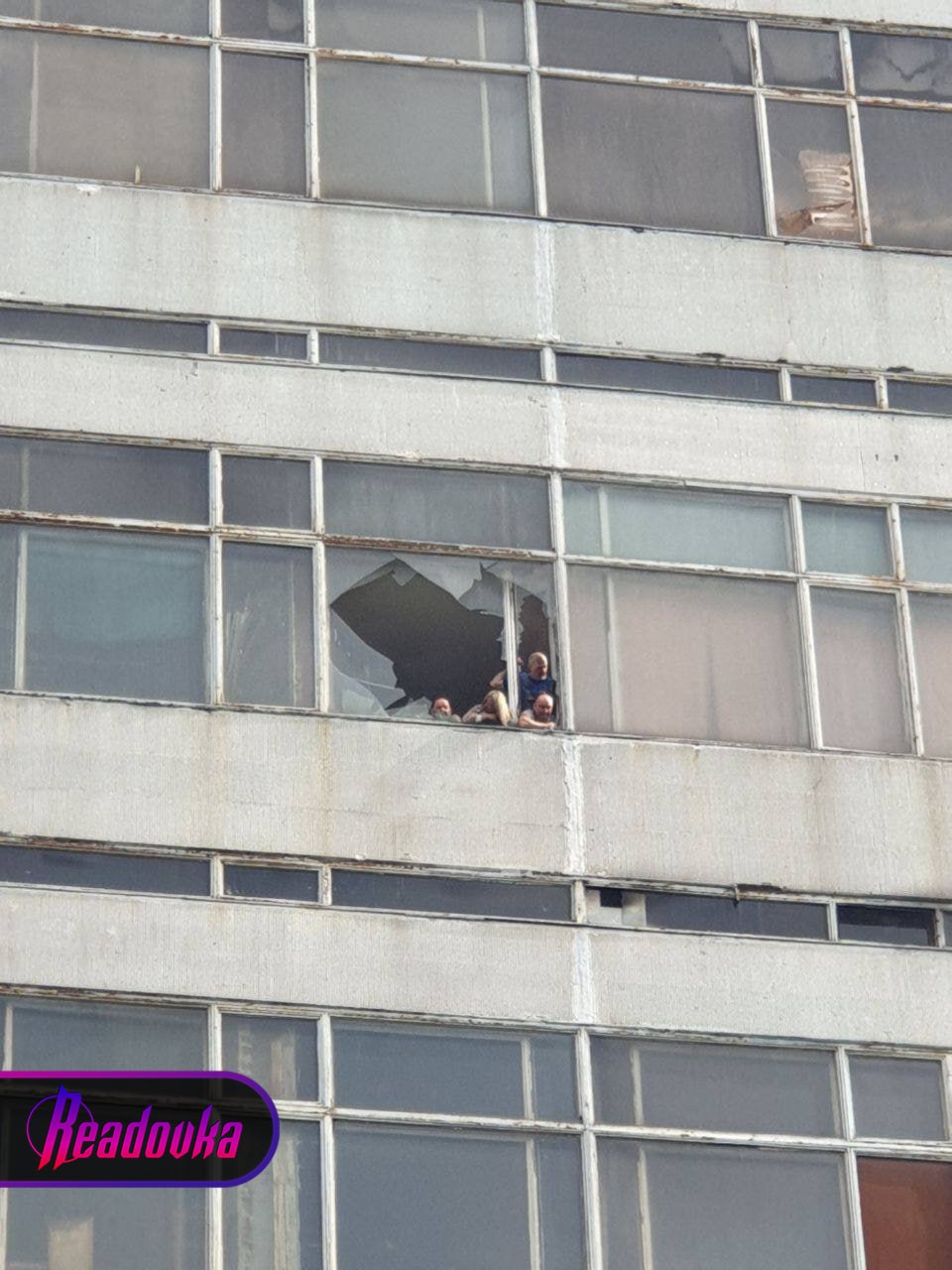 На фото — трое мужчин и девушка, которые кричат из окна о помощи. Как сообщает МЧС РФ, работы по спасению людей осложняет высокая температура и плотное задымление.
