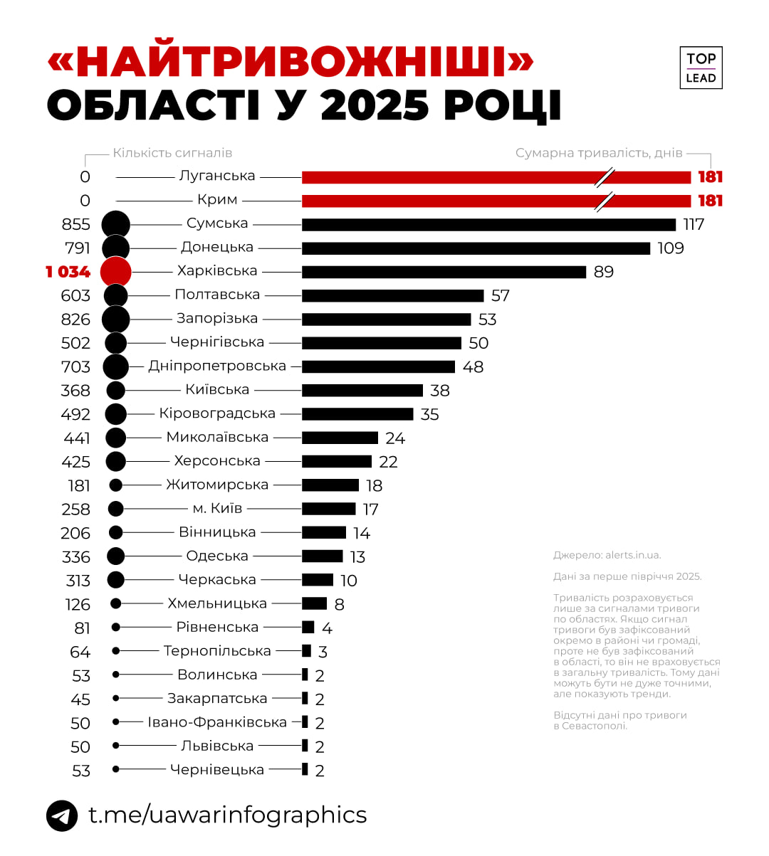 В 2025 году самыми напряжёнными регионами Украины стали Харьковская и Сумская области. В Харьковской зафиксировано рекордное число воздушных тревог — 1034 за год. А в Сумской области суммарная продолжительность тревог превысила 117 суток, став самой продолжительной по времени угроз.