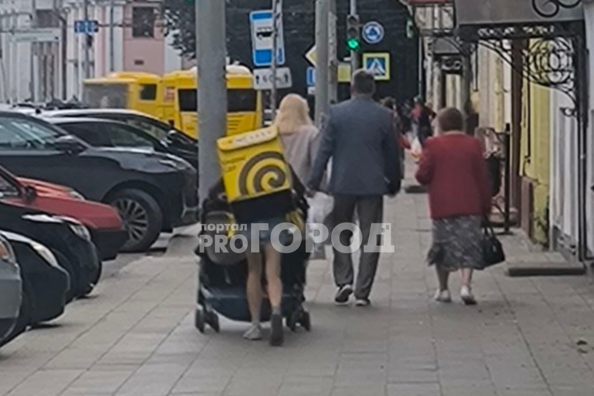 Ярославцы сообщают о женщине, которая работает курьером и доставляет продукты вместе с коляской, в которой сидят малыши-близнецы.
