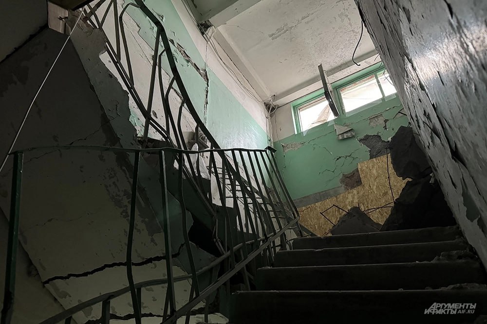 Разрушения подъезда действительно ужасают. А переезжать людям некуда. Военкор АиФ Дмитрий Григорьев прошелся по опасному подъезду и поговорил с жильцами. Подробности в его репортаже.