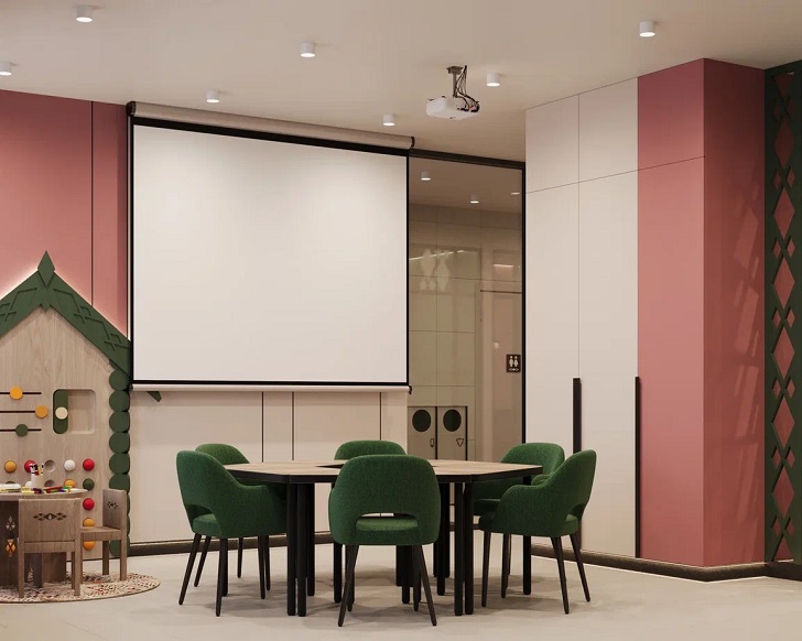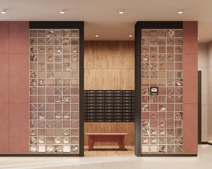 Русский стиль ощутим уже с первого взгляда на проект жилого комплекса – входные группы будут выполнены из красного кирпича, а вдоль аллей будут расти березки – главный символ и душа страны. Эта атмосфера последовательно продолжит поддерживаться и в дизайне общественных пространств, оформление которых также будет выдержано в традиционных теплых бежевых, зеленых и красных оттенках с элементами этники.