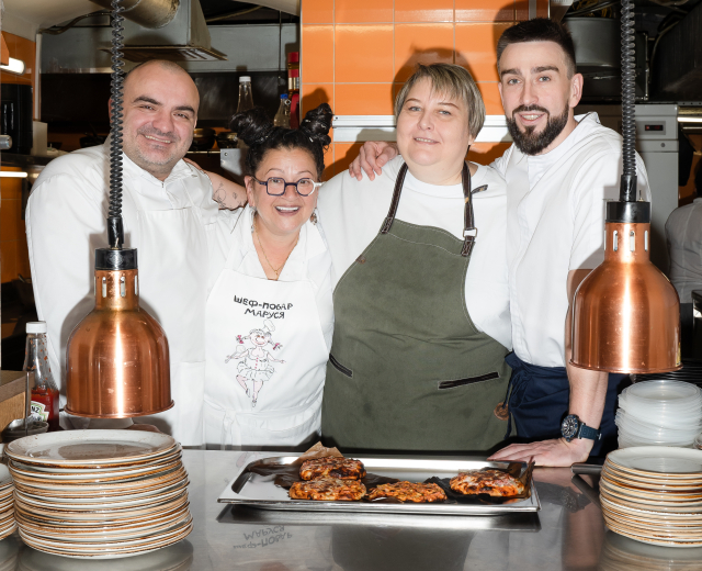 Ольга Гурская, повар из детского реабилитационного центра в Выборге, одним днем 2024-го года проснулась знаменитой. Ее милые ностальгические ролики с рутиной на кухне и «пингвинячей походкой» (да, это цитата!) разлетелись на мемы, словно школьный альбом перенося в ту самую длинную перемену и очередь за «комплексным обедом» и сосиской в тесте. Наша редакция Собака.ru не смогла устоять: пригласили Ольгу в Петербург дать мастер-класс по школьной пицце для шеф-поваров города — Марины Наумовой (Mindal Cafe), Дениса Прохорова (Chang) и Дмитрия Решетникова (Zazazu и Mon ChouChou). А заодно обсудили сложность профессии и вспомнили любимые и ненавистные блюда из школьных столовых.