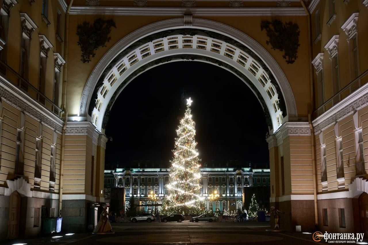 Главную городскую ель начали украшать в центре Петербурга 15 декабря. Красавица приехала в Петербург из Рощинского лесничества в Выборгском районе Ленобласти. Ей около 120 лет, и она значительно старше московской. На Дворцовую площадь ее привезли на длинном прицепе, а устанавливали при помощи крана.