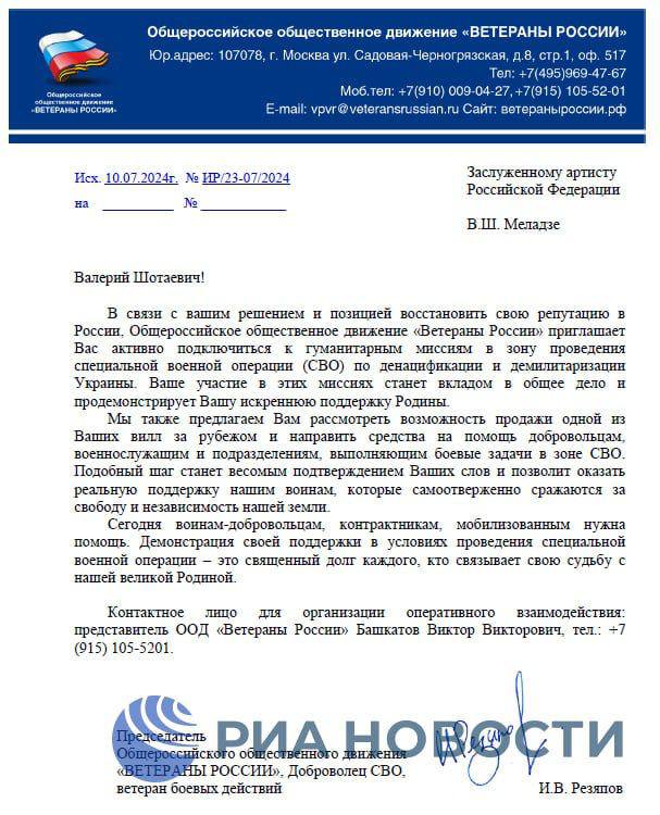 Организация «Ветераны России» предложила Валерию Меладзе продать виллу в Испании, а деньги от продажи перечислить на нужды СВО.