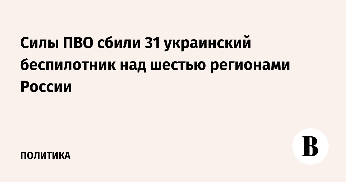 Российские средства противовоздушной обороны с 9.00 до 14.00 мск уничтожили 31 украинский беспилотник над шестью регионами страны. Об этом сообщает Минобороны.