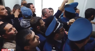Участники акции также требуют выплаты задолженностей по зарплате. Им удалось прорвать полицейское оцепление и ворваться в здание. Они вошли в один из кабинетов, оттуда были слышны крики и требования участников акции, пишет "Новости-Армения".