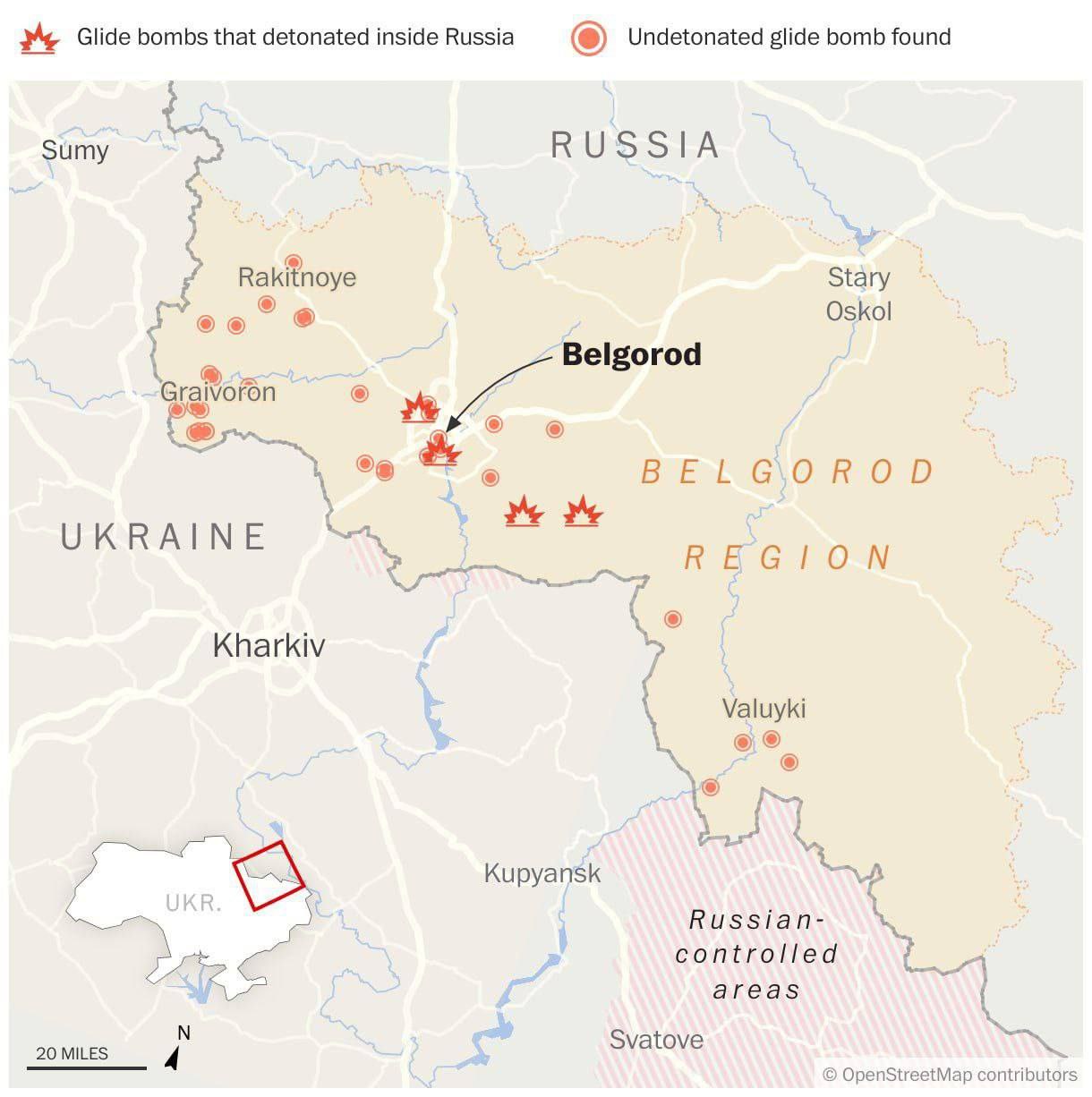 Десятки российских управляемых бомб упали на территории РФ, — The Washington Post