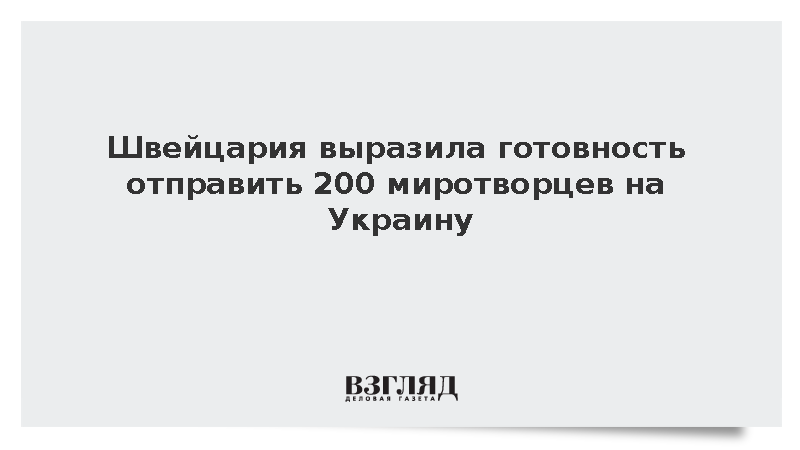 Командующий швейцарскими вооруженными силами генерал-лейтенант Томас Зюссли заявил о возможности отправки 200 военнослужащих для поддержания мира на Украину при условии урегулирования конфликта.