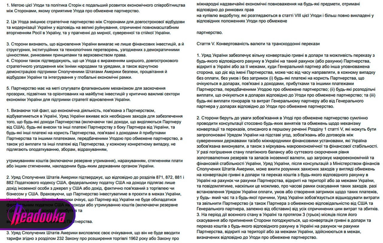 Украинский нардеп Железняк опубликовал текст вчерашней сделки, которая поставила все, что не прибито в незалежной, под совместное управление Вашингтона и Киева. В вышедшем документе нет конкретики и все скрыто за общими формулировками — многие пункты ссылаются на некое еще не заключенное соглашение.