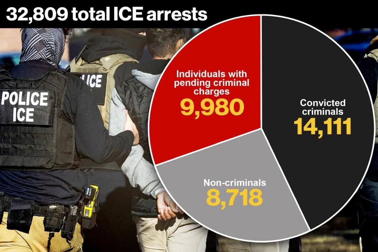 С возвращением президента Трампа к власти Иммиграционная и таможенная служба (ICE) произвела 32000 арестов за первые 50 дней работы новой администрации, и 70% из них либо предстали перед судом, либо были осуждены за преступления, сообщили сегодня высокопоставленные представители агентства.