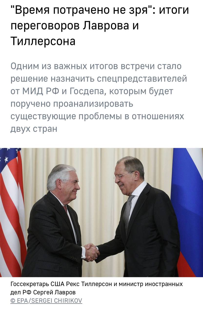 «В Москве прошли первые переговоры госсекретаря США с главой МИД РФ Сергеем Лавровым - Время потрачено не зря.