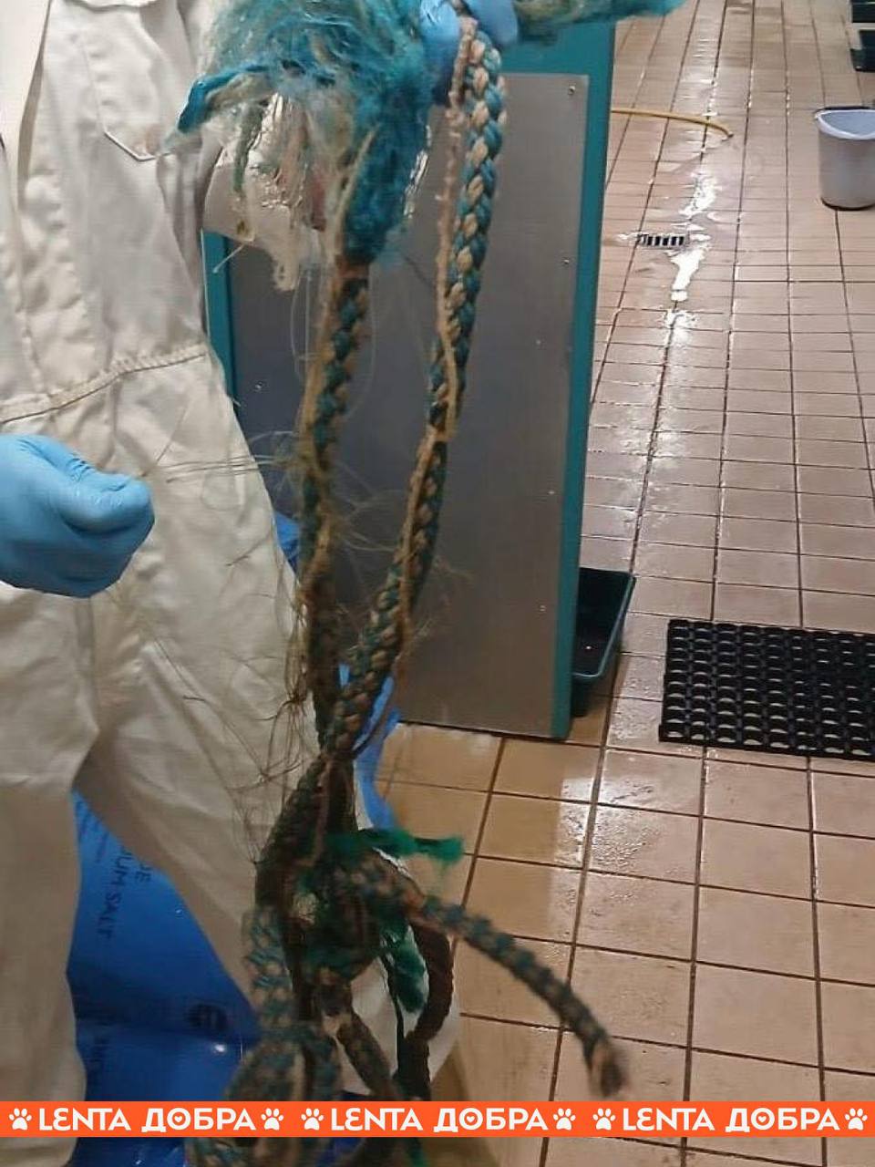 В Великобритании на берег выбросило тюлениху, обмотанную верёвками и рабочими сетями рыболовов. Её заметили местные жители и позвонили в организацию помощи диким животным. Измождённая тюлениха так устала от попыток снять с себя путы, что еле обращала внимание на зоозащитников, которые приехали ей на помощь. Неизвестно, сколько времени бедняжка провела на суше в тщетных попытках спасти себя.