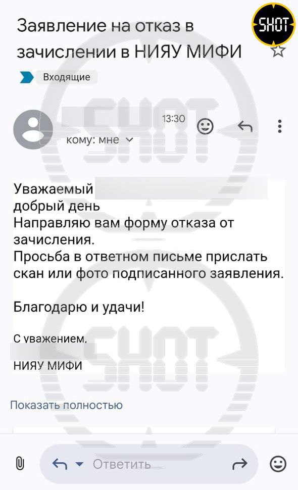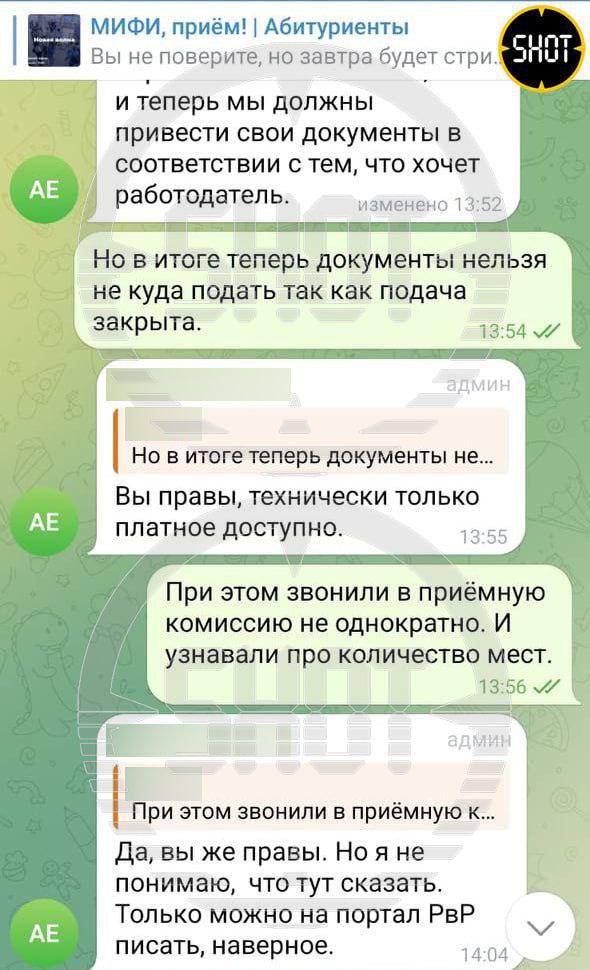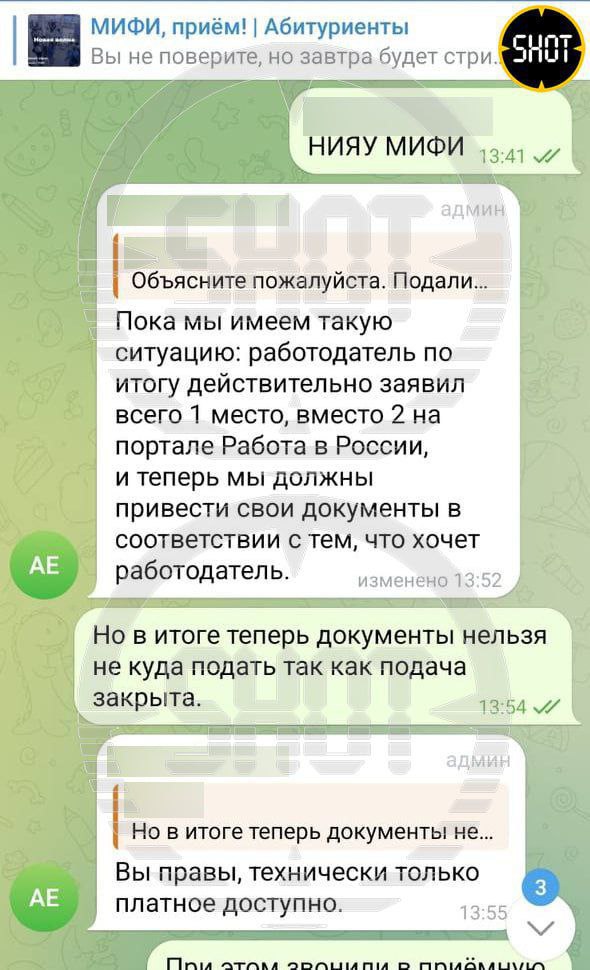 Ситуацию SHOT прокомментировали и в МИФИ: по их словам, "проблема возникла в связи с несоответствием количества мест, которые были выделены Минобрнауки". В университете пояснили, что были вынуждены скорректировать итоги приёма, так как абитуриент не смог бы заключить договор на целевое обучение.