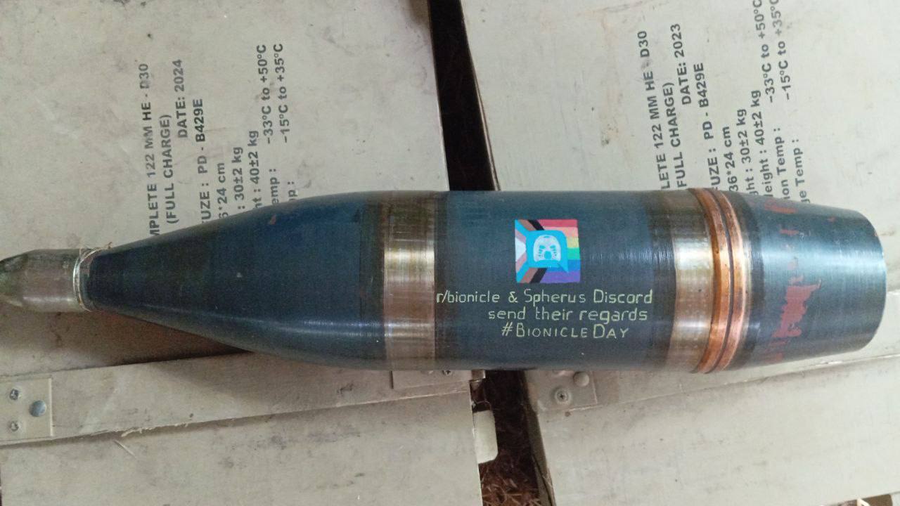 Послание от американского ЛГБТ*-чата в «дискорде/рэдите» на северокорейском снаряде, выпущенный артиллерией ВС РФ по ВСУ.