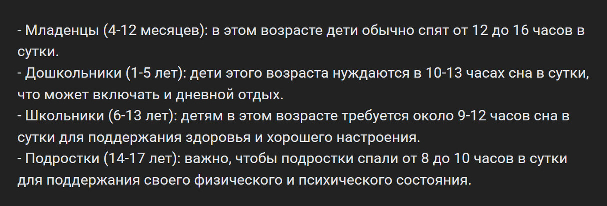 Кроме того, председатель Петросовета рассказала, сколько сна требуется детям разных возрастов: