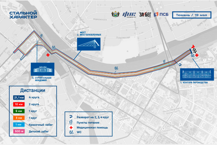 В Тюмени 19 мая пройдет фестиваль бега «Стальной характер», из-за которого в центре города будут перекрыты некоторые дороги. Забег будет начинаться от «Конторы пароходства». Об этом сообщается на сайте мероприятия.