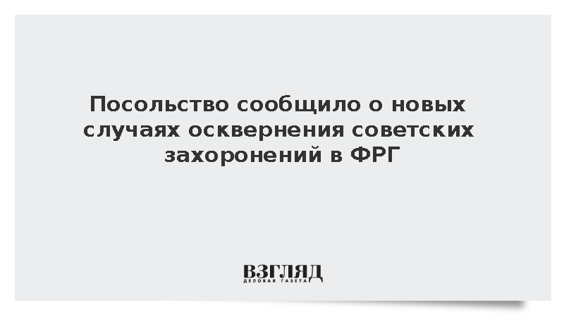Ранее посольство России в Германии направило ноту протеста в МИД ФРГ в связи новыми актами вандализма в отношении советских памятников в Потсдаме, в Нойбранденбурге и Зюре.