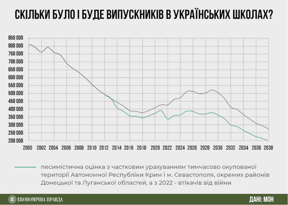 Интересный слайд Минобразования, который указывает на то, что за ближайшие 15 лет количество выпускников в школах Украины сократится в 2-2, 2 раза.