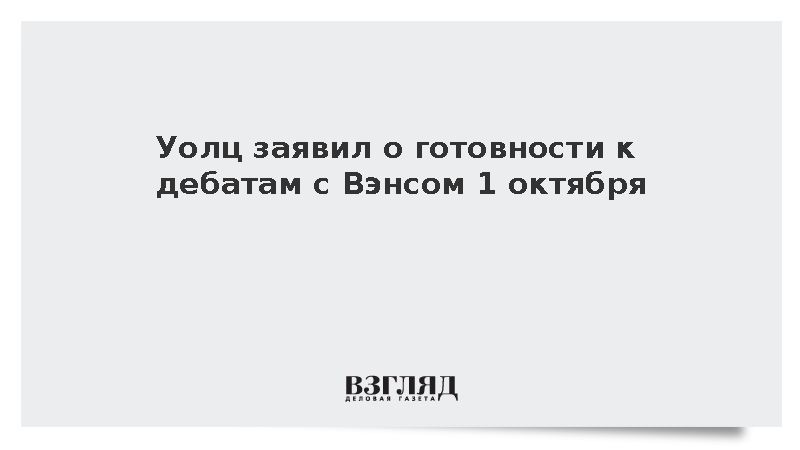 Губернатор штата Миннесота Тим Уолц, который стал кандидатом в вице-президенты США от демократов, заявил, что готов к дебатам с оппонентом от республиканцев –сенатором Джей-Ди Вэнсом 1 октября.