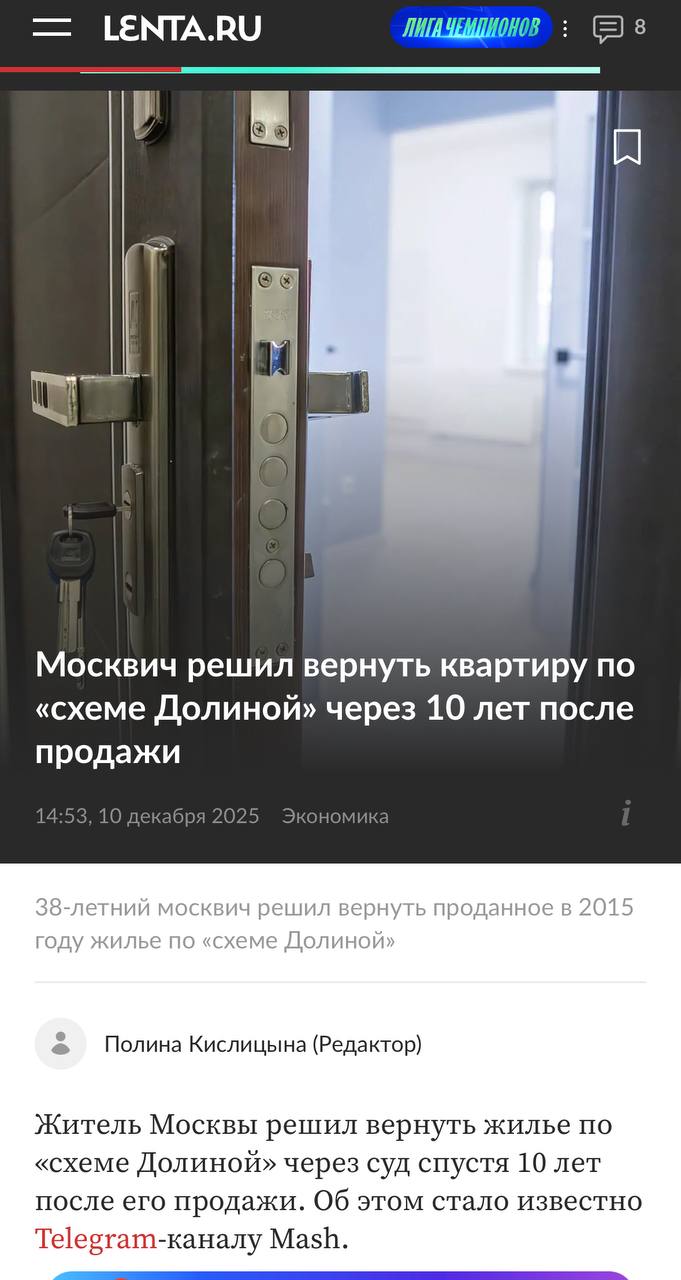 Житель Москвы решил вернуть жилье по «схеме Долиной» через суд спустя 10 лет после его продажи. Об этом стало известно Mash.